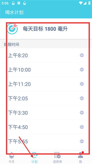 2、进入计划界面设置每天的喝水目标和提醒时间,合理安排喝水时间,确保按时补充水分,养成良好的喝水习惯。